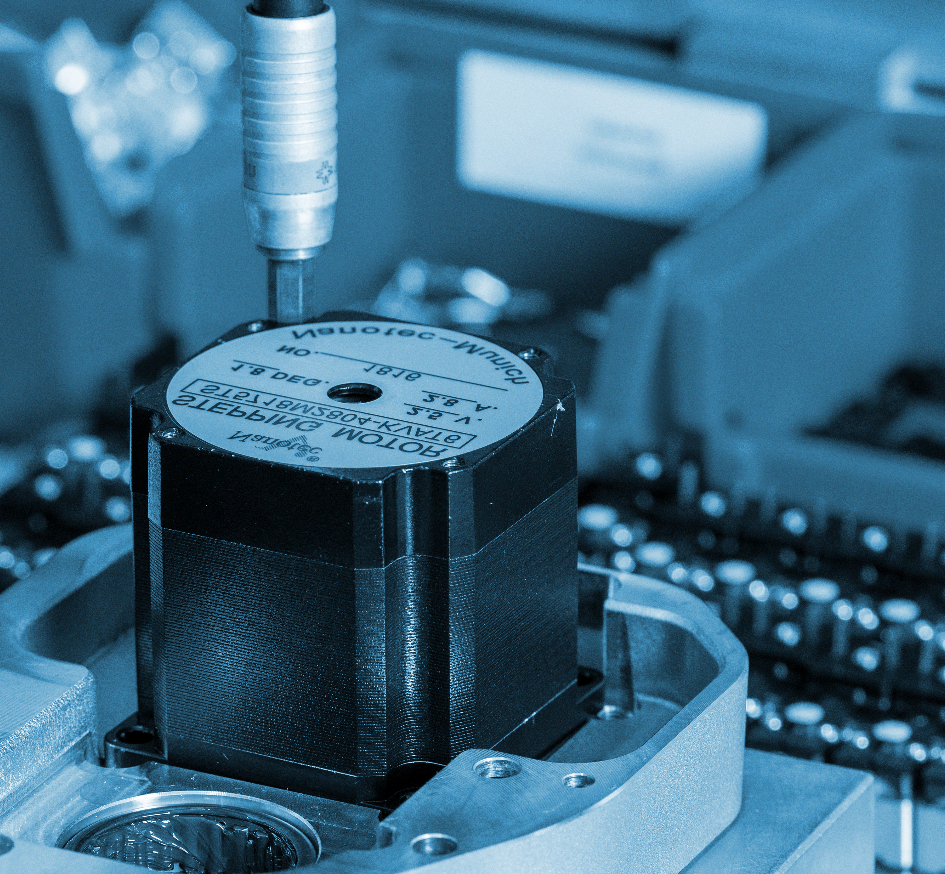 - Lieferung von Schrittmotoren, Servomotoren und DC-Motoren bis 1 kW inkl. Ansteuerung, Verkabelung und Software